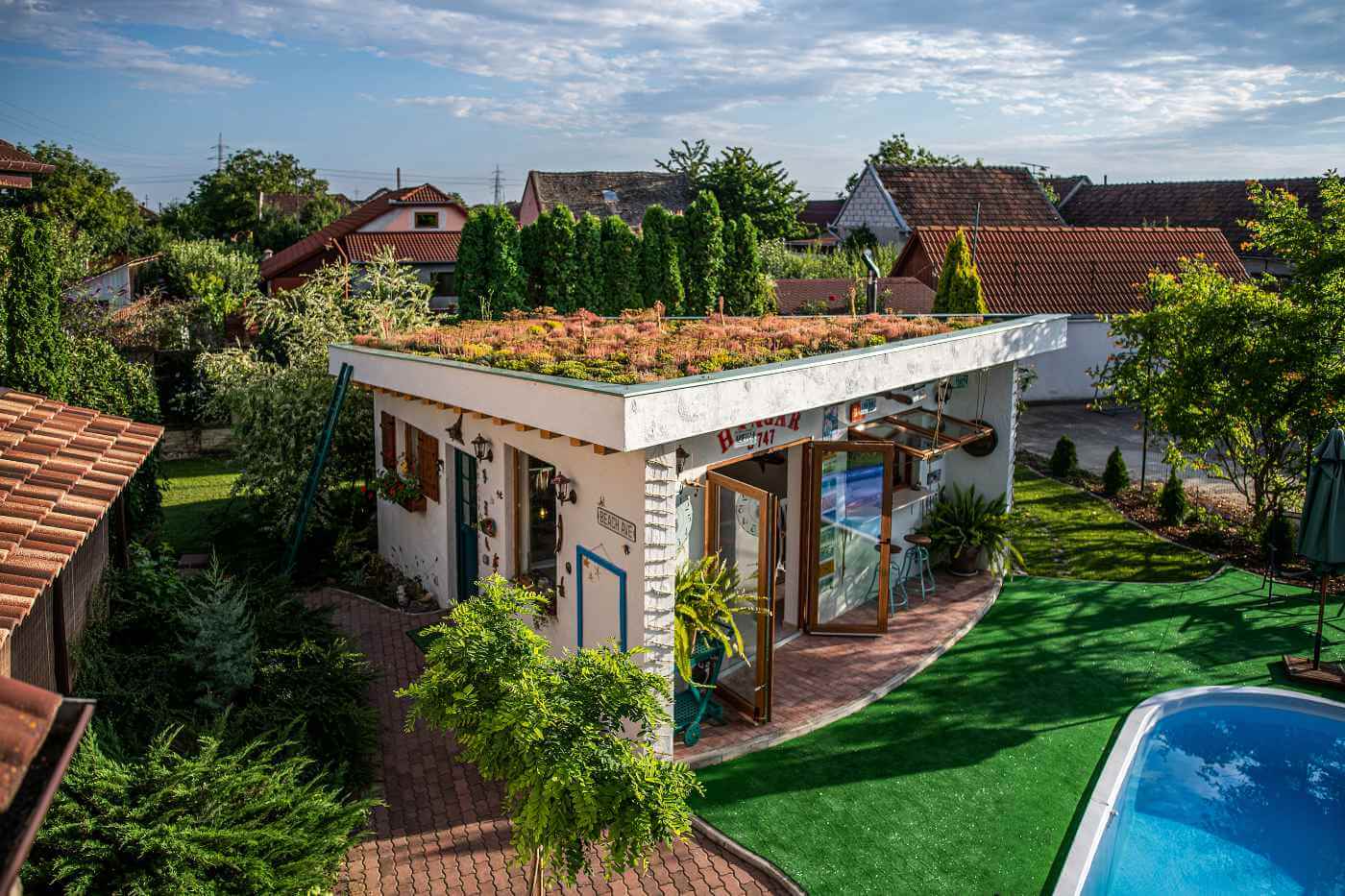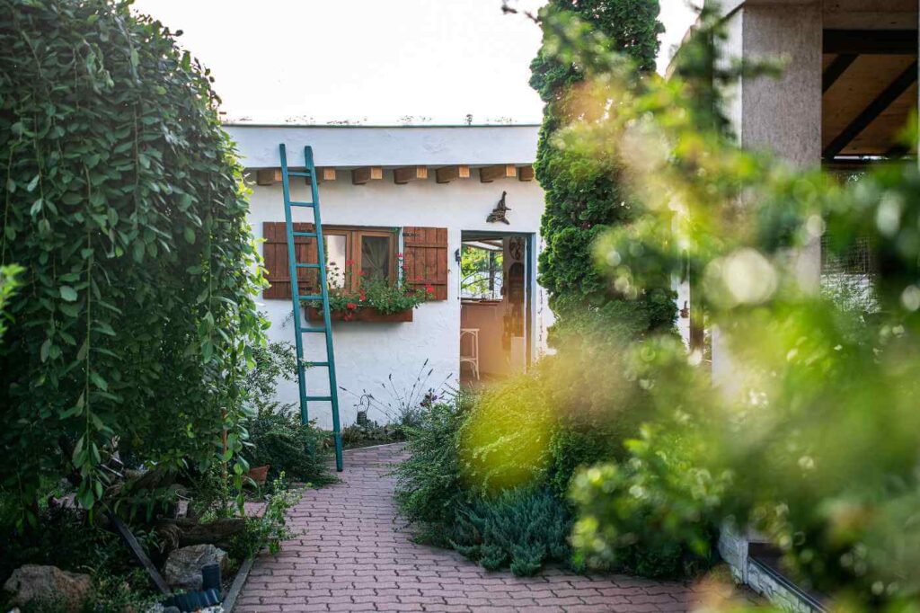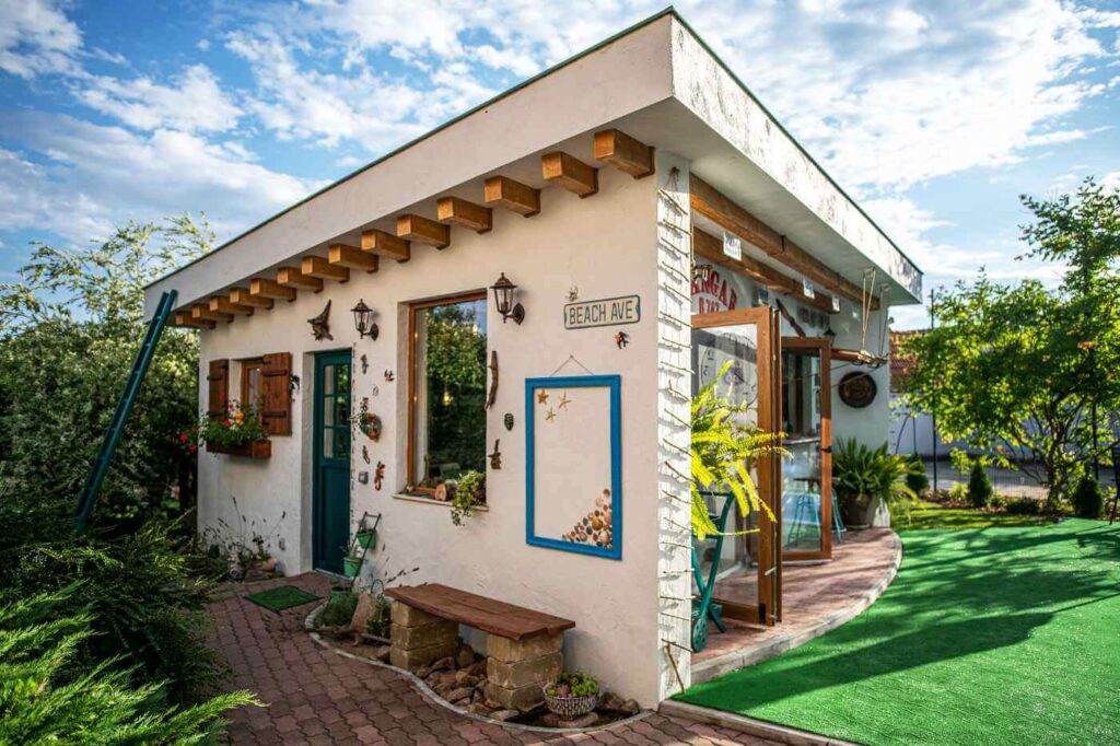 Un alt element special este acoperișul verde, plantat chiar de ei cu o varietate de flori alese cu grijă. Acesta aduce prospețime, echilibru și o legătură firească cu natura, completând atmosfera caldă și idilică a locului.
