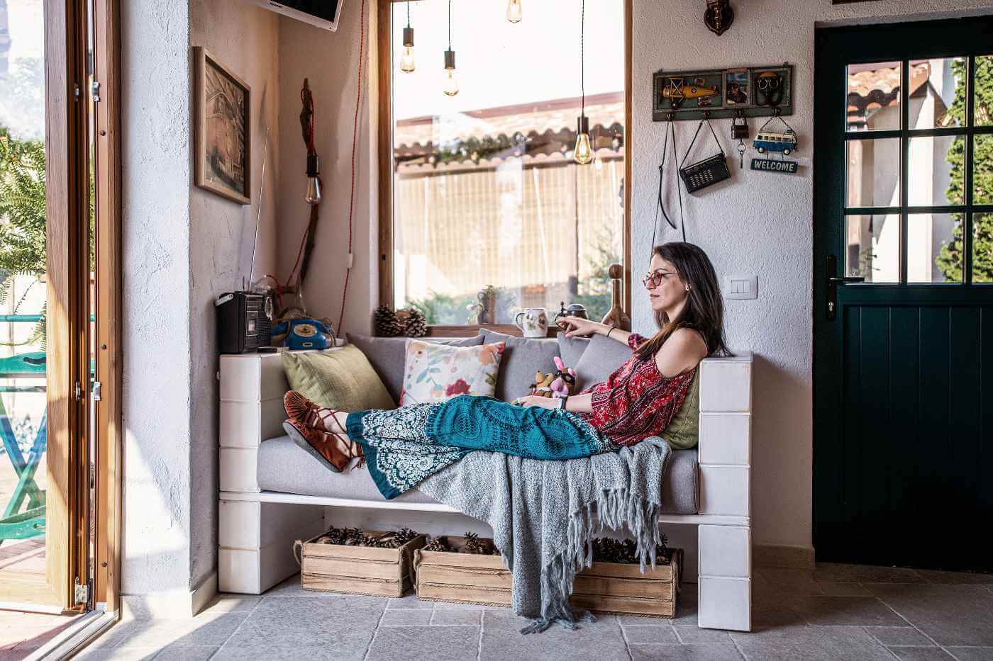Una dintre cele mai frumoase surprize a fost pasiunea proprietarilor pentru proiectele DIY. Multe dintre decorațiuni au fost realizate chiar de ei, pornind de la schițele și ideile mele. Ce părea inițial o provocare s-a transformat în adevărate piese artizanale, care adaugă un farmec aparte și o notă personală spațiului, cum e aplica de perete realizată dintr-o creangă deosebită, cablu textil și bec retro.