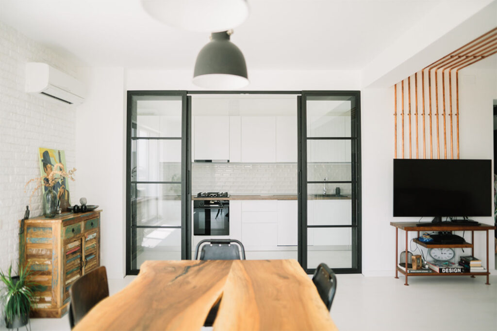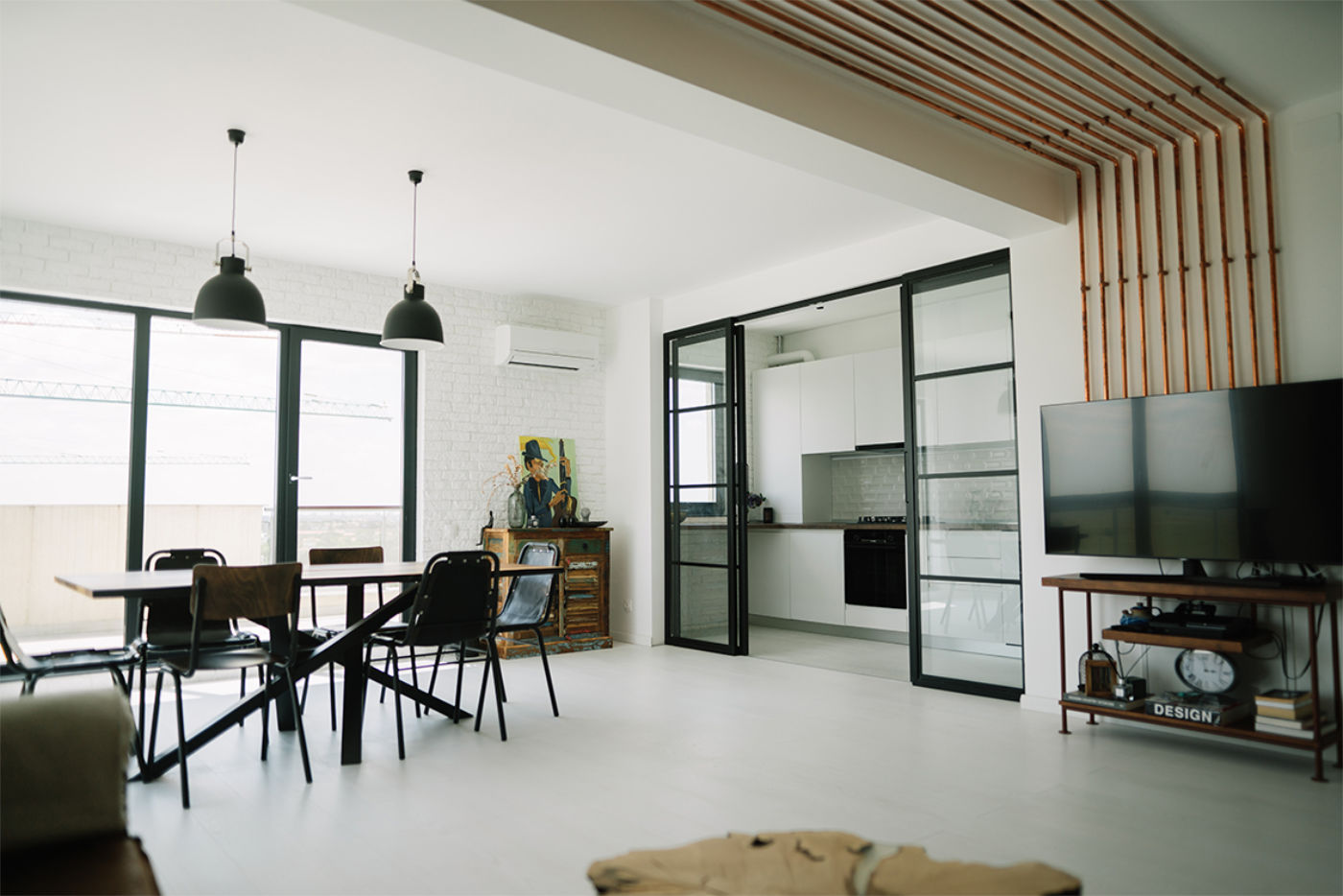 Inițial gândit ca o proprietate de închiriat, am dorit ca designul apartamentului să reflecte noul stil de viață al familiei. Astfel, am căutat să atragem chiriași cu preferințe similare, dar și să creăm un cămin confortabil în cazul în care proprietarii ar decide să se mute aici – lucru care s-a și întâmplat. Au ales minimalismul cu un aer industrial – artistic, o cromatică alb-negru și au dorit să integrăm doar obiecte utile sau cu o semnificație profundă pentru ei.